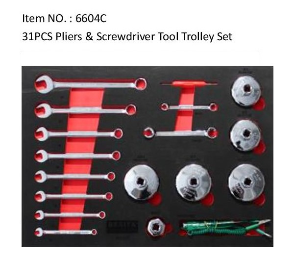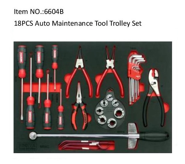 Item NO.:6604A 108PCS Socket Tool Trolley Set Item NO.:6604B 18PCS Auto Maintenance Tool Trolley Set Item NO.:6604C 31PCS Pliers & Screwdriver Tool Trolley Set